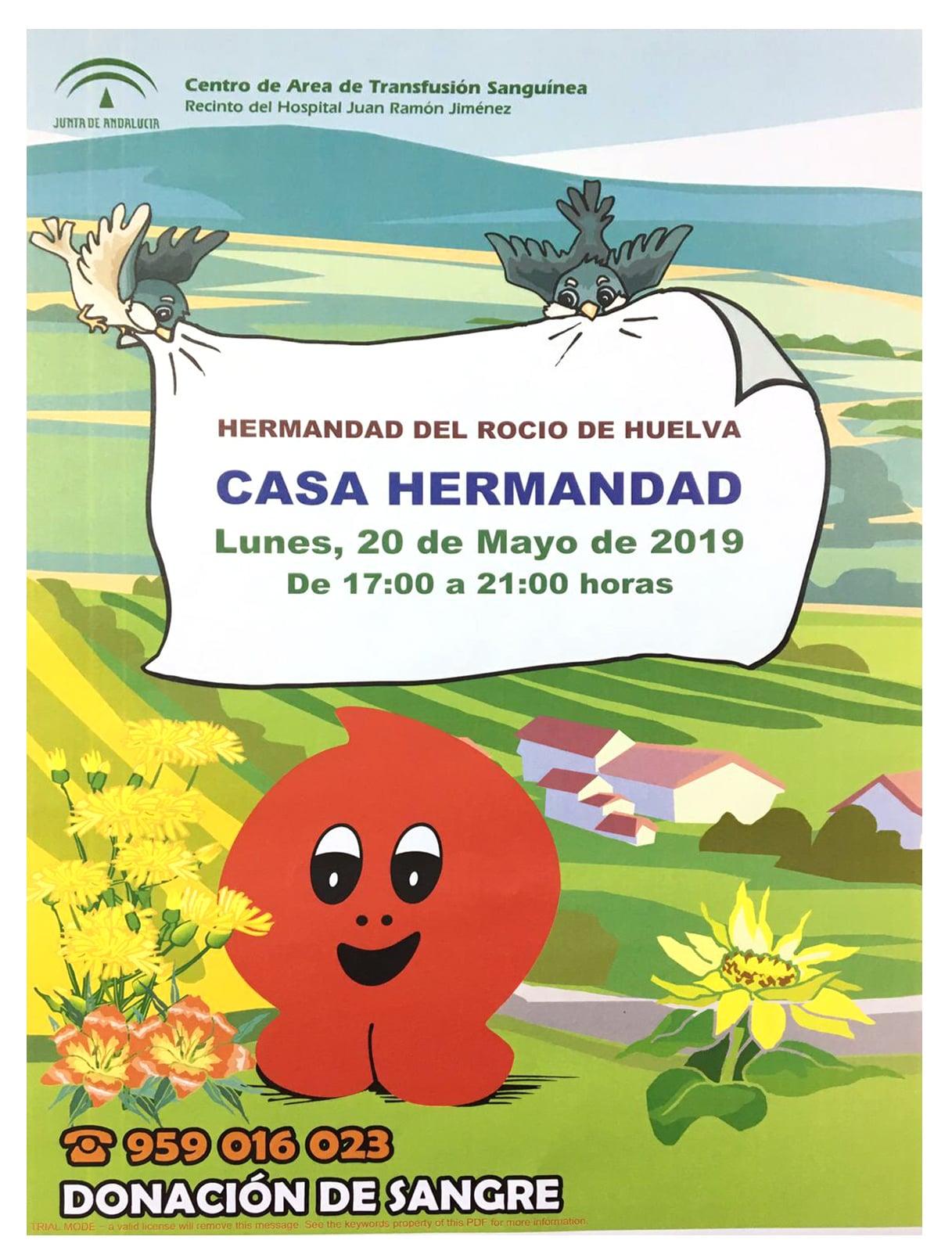 El próximo LUNES 20 de mayo, de 17 a 21 horas, coincidiendo con el sorteo de carros, se podrá DONAR SANGRE en la Casa de Hermandad, como parte del programa de Obras Sociales 2019.