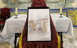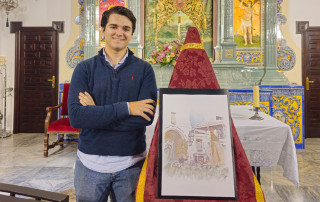 En la tarde de ayer, el joven onubense Alonso Sánchez Martín hacía entrega a la hermandad de la pintura que ilustrará la portada del