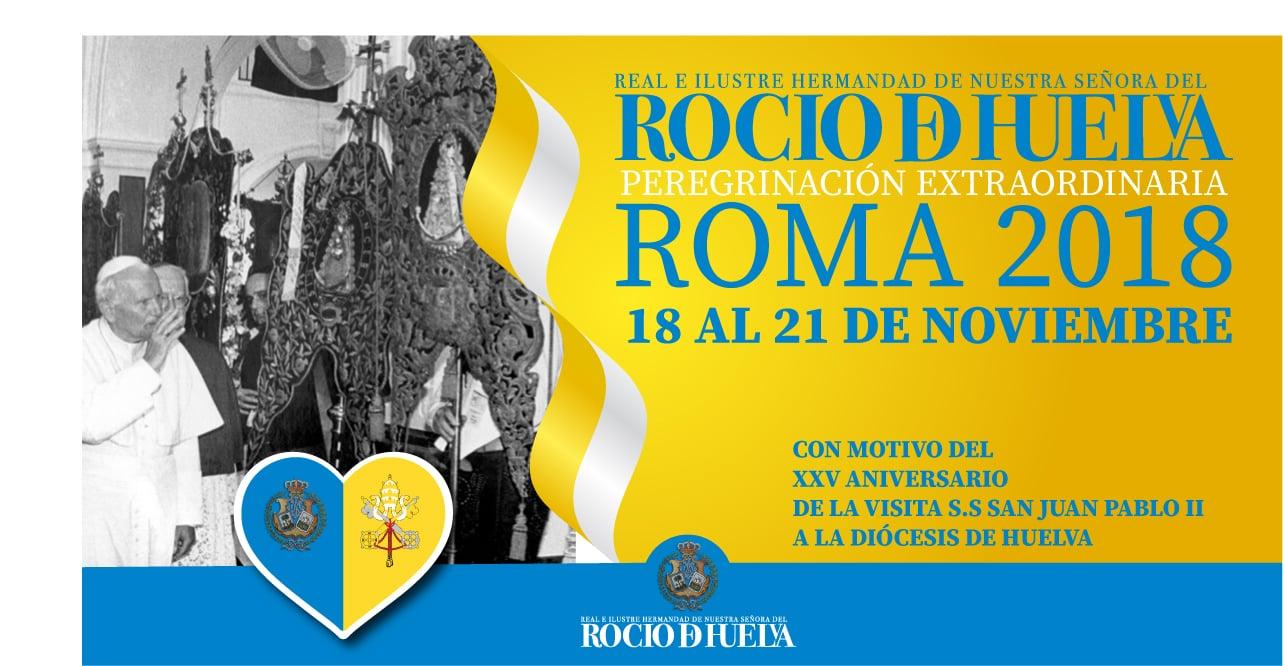 Con motivo del XXV Aniversario de la visita S.S San Juan Pablo II a nuestra diócesis, la Hermandad de Huelva quiere celebrarlo convocando a hermanos y simpatizantes a una Peregrinación Extraordinaria a Roma, que si todo va según lo previsto, se esta organizando ya para los diás 18 al 21 de noviembre.